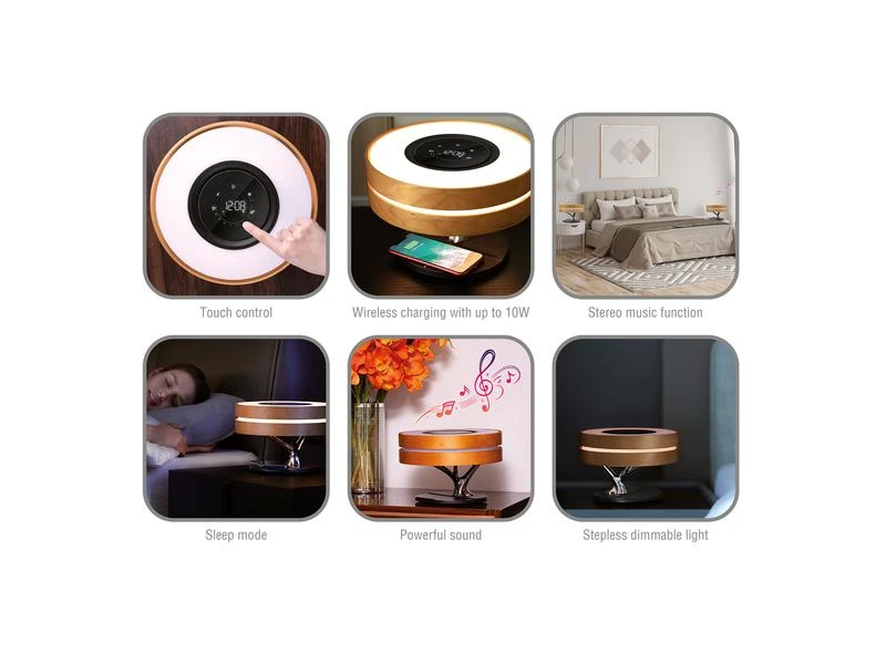 | Zusätzliche Ausstattung | Dimmer, Bedienfelder, Variable Farbtemperatur, Lautsprecher, Aufladestation |