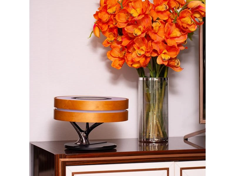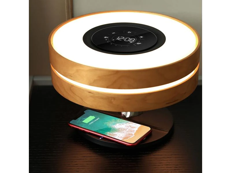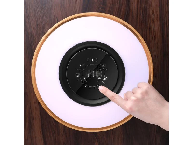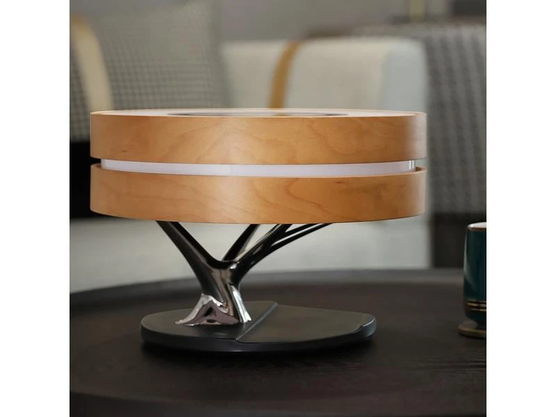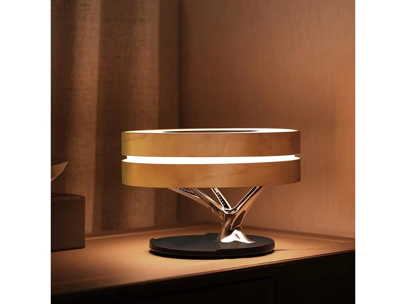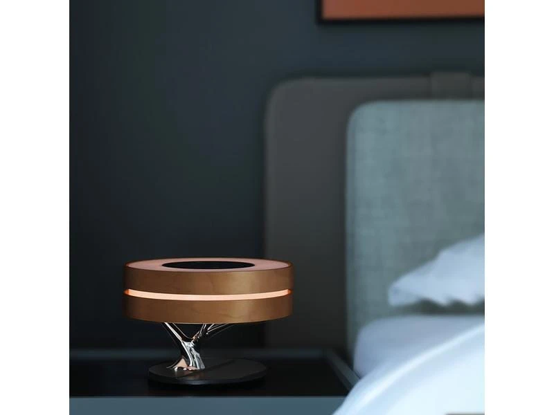 Die fliessende, natürliche Linienführung dieser vielseitigen Tischlampe passt sich perfekt in jede Wohnung ein. Dabei spielt es keine Rolle, ob Sie den Bonsai 2 im Wohnzimmer, in der Küche oder im Schlafzimmer platzieren. Der Bonsai überzeugt immer. Die zwei stufenlos dimmbaren Lichtfarben sorgen für ein angenehmes Ambiente. Dabei können Sie wahlweise eine kältere oder wärmere Lichtfarbe auswählen und den Raum ganz nach Stimmung oder Anlass erhellen. Über Bluetooth kann schnell und unkompliziert das Smartphone oder Tablet mit dem Smart-Bonsai 2 verbunden werden. Dabei überzeugt der Bonsai durch eine detailreiche Soundwiedergabe mit glasklaren Höhen und satten Bässen. Schalten Sie zwei Bonsais mit nur einem Klick über den TWS-Modus zusammen und geniessen Sie Stereosound – ideal für grosse Räume oder Schlafzimmer mit zwei Nachttischen. Auch Ihr Smartphone, TWS Headset oder die Smartwatch kommen nicht zu kurz. Das Pad zum kabellosen Laden, liefert mit bis zu 10 W ausreichend Power, um eine Vielzahl von Qi-fähigen Geräten schnell wieder aufzuladen. Die Funktionen des Bonsai 2 können über das Touchpad auf der Oberseite der Lampe gesteuert werden. Dort haben Sie Zugriff auf alle wichtigen Funktionen wie die Lichtstärke, die Musikwiedergabe, den TWS- oder Ruhemodus. Aktivieren Sie den automatischen Ruhemodus und die Lampe wird automatisch auf die minimalste Lichtstärke gedimmt. Nach weiteren 30 Minuten deaktiviert sich dann sowohl das Licht als auch der Lautsprecher. So sind Sie sicher, dass die Lampe nicht die ganze Nacht eingeschaltet bleibt. Die langlebige Materialkombination sorgt dafür, dass Sie lange an dieser Tischlampe Freude haben. Das FSC-zertifizierte, helle Ahornholz stammt aus ökologischen Anbau und ist daher umweltbewusst und nachhaltig.