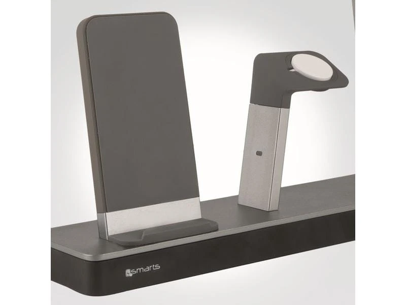 Die 4smarts TwinDock ist eine elegante, in Deutschland entwickelte LED-Lampe, die gleichzeitig als drahtloses Ladegerät für das iPhone und die Apple Watch dient.