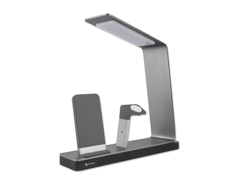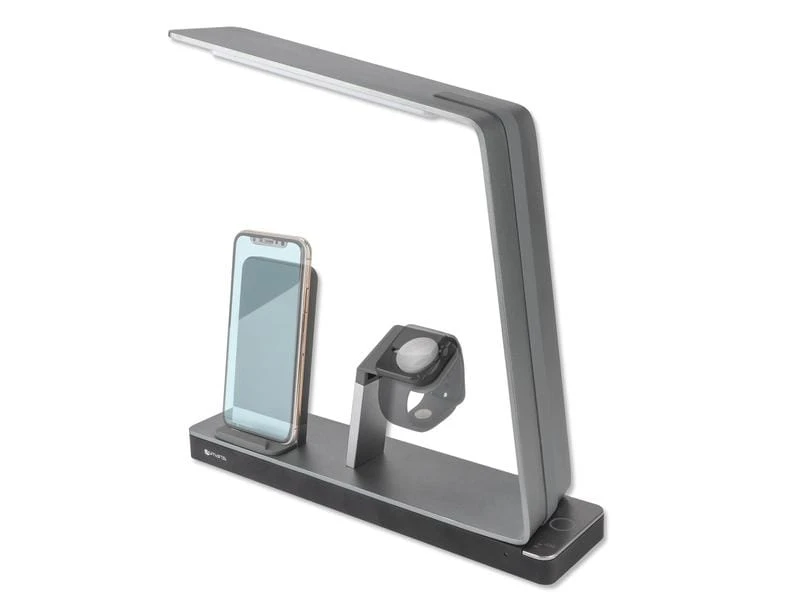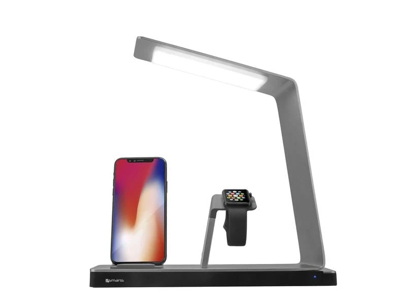 Die 4smarts TwinDock ist eine elegante, in Deutschland entwickelte LED-Lampe, die gleichzeitig als drahtloses Ladegerät für das iPhone und die Apple Watch dient.