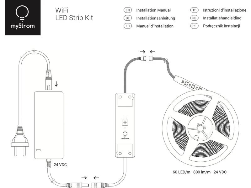 Das myStrom WiFi LED Strip Set besteht aus einem hochwertigen, für den Ausseneinsatz geeigneten 24 V LED Strip, dem dazu passenden WLAN-Treiber sowie einem Netzteil. Das Set kann direkt ins bestehenden WLAN eingebunden werden und wird über die myStrom App oder die optional erhältlichen myStrom Buttons bedient.