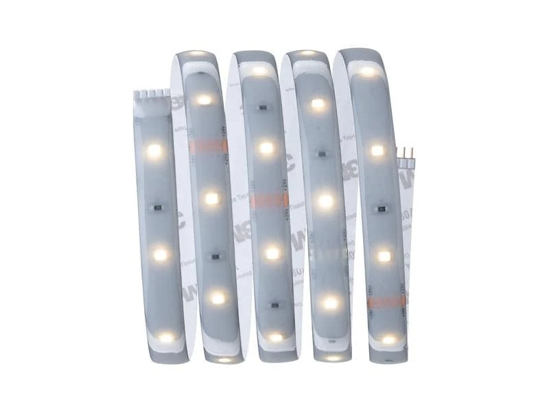 Dieses MaxLED 250 Basisset enthält neben dem Streifen in der Länge von 1.5m auch ein passendes Vorschaltgerät. Es lässt sich nach Bedarf um eine Steuerungseinheit mit Fernbedienung erweitern. Dank der neuartigen IP44-Beschichtung „Protecting Cover“, lässt sich das Basisset auch in Feuchträumen verwenden. Die MaxLED Strips sind mit 6 Watt so leistungsstark, dass sie problemlos zur Raumausleuchtung eingesetzt werden können. Besonders in Profilen sind sie echte Highlights. Warmweisse Strips sorgen für gemütliches und entspannendes Raum- und Nutzlicht. Bitte beachten Sie, dass die Maximallänge von 5.5 Metern nicht überschritten werden darf.