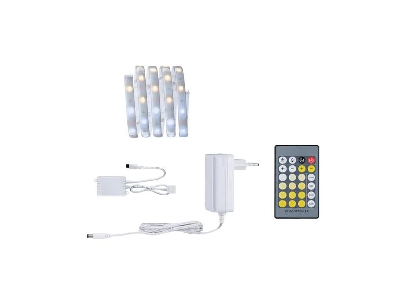Dieses MaxLED 250 Basisset enthält neben dem Streifen in der Länge von 3 Meter, ein passendes Vorschaltgerät und eine Steuerungseinheit mit Infrarotfernbedienung. Die MaxLED Strips sind mit 11 Watt so leistungsstark, dass sie problemlos zur Raumausleuchtung eingesetzt werden können. Besonders in Profilen sind sie echte Highlights. Dank der intelligenten Weisslichtsteuerung Tunable White lässt sich die Lichtfarbe der Strips individuell variieren – von tageslichweissem Arbeitslicht bis hin zu warmweisser Entspannungsbeleuchtung ist alles möglich. Das Set lässt sich nach Bedarf mit zusätzlichen Strips und Verbindern auf 6 Meter erweitern.