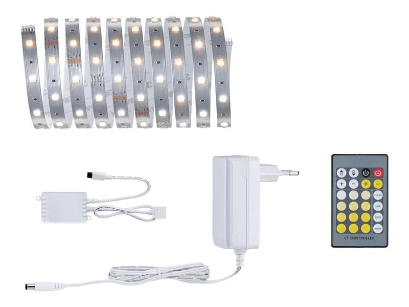 Dieses MaxLED 250 Basisset enthält neben dem Streifen in der Länge von 3 Meter, ein passendes Vorschaltgerät und eine Steuerungseinheit mit Infrarotfernbedienung. Die MaxLED Strips sind mit 11 Watt so leistungsstark, dass sie problemlos zur Raumausleuchtung eingesetzt werden können. Besonders in Profilen sind sie echte Highlights. Dank der intelligenten Weisslichtsteuerung Tunable White lässt sich die Lichtfarbe der Strips individuell variieren – von tageslichweissem Arbeitslicht bis hin zu warmweisser Entspannungsbeleuchtung ist alles möglich. Das Set lässt sich nach Bedarf mit zusätzlichen Strips und Verbindern auf 6 Meter erweitern.