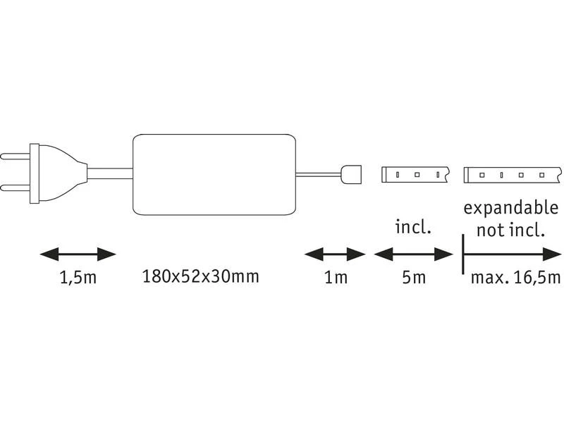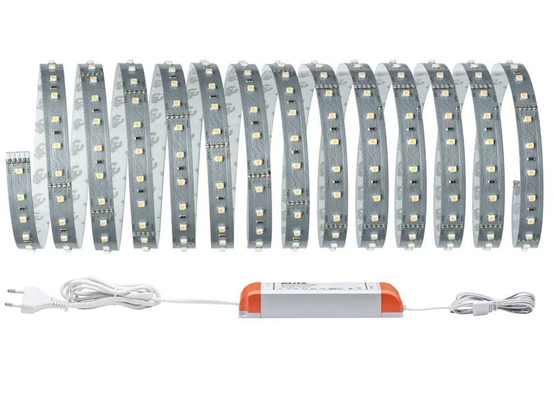 MaxLED-Strips sind so leistungsstark, dass sie problemlos zur Raumausleuchtung eingesetzt werden können. Besonders in Profilen sind sie echte Highlights. Warmweisse Strips sorgen für gemütliches und entspannendes Raum- und Nutzlicht. Das Basisset enthält neben dem Streifen ein passendes Vorschaltgerät. Es lässt sich nach Bedarf mit zusätzlichen Strips, Verbindern und Steuerungseinheiten mit Fernbedienung erweitern. Bitte beachten Sie bei der Planung die Maximallänge von 16.5 Metern, die nicht überschritten werden darf.