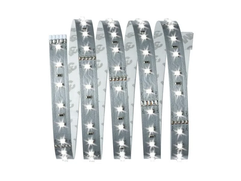 MaxLED-Strips sind so leistungsstark, dass sie problemlos zur Raumausleuchtung eingesetzt werden können. Besonders in Profilen sind sie echte Highlights. Tageslichtweisse Strips sorgen für aktivierendes und konzentrationsförderndes Raum- und Nutzlicht. Das Basisset enthält neben dem Streifen ein passendes Vorschaltgerät. Es lässt sich nach Bedarf mit zusätzlichen Strips, Verbindern und Steuerungseinheiten mit Fernbedienung erweitern. Bitte beachten Sie bei der Planung die Maximallänge von 3.5 Metern, die nicht überschritten werden darf.