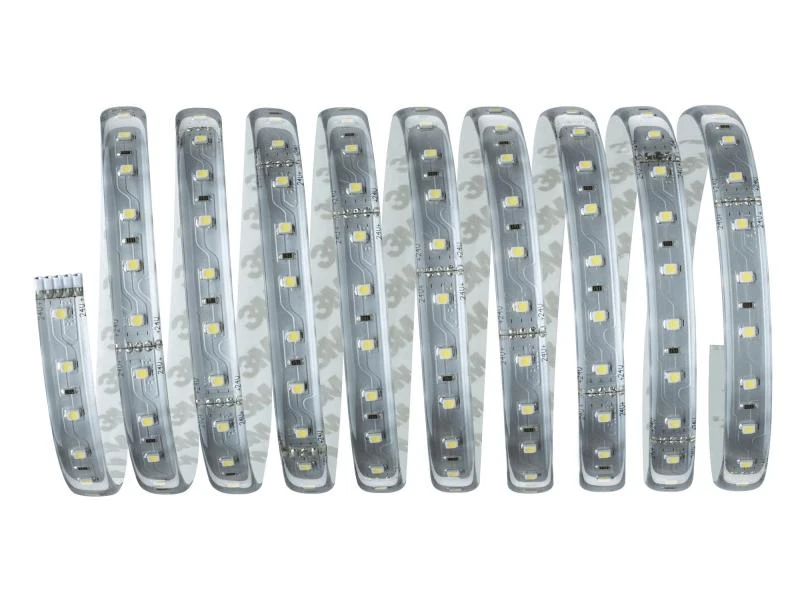 MaxLED-Strips sind so leistungsstark, dass sie problemlos zur Raumausleuchtung eingesetzt werden können. Besonders in Profilen sind sie echte Highlights. Tageslichtweisse Strips sorgen für aktivierendes und konzentrationsförderndes Raum- und Nutzlicht. Das Basisset enthält neben dem Streifen ein passendes Vorschaltgerät. Es lässt sich nach Bedarf mit zusätzlichen Strips, Verbindern und Steuerungseinheiten mit Fernbedienung erweitern. Bitte beachten Sie bei der Planung die Maximallänge von 6.5 Metern, die nicht überschritten werden darf.