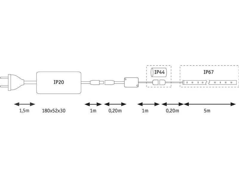 | Zusammensetzung | LED Stripe, Netzteil, Fernbedienung, Halteclips |