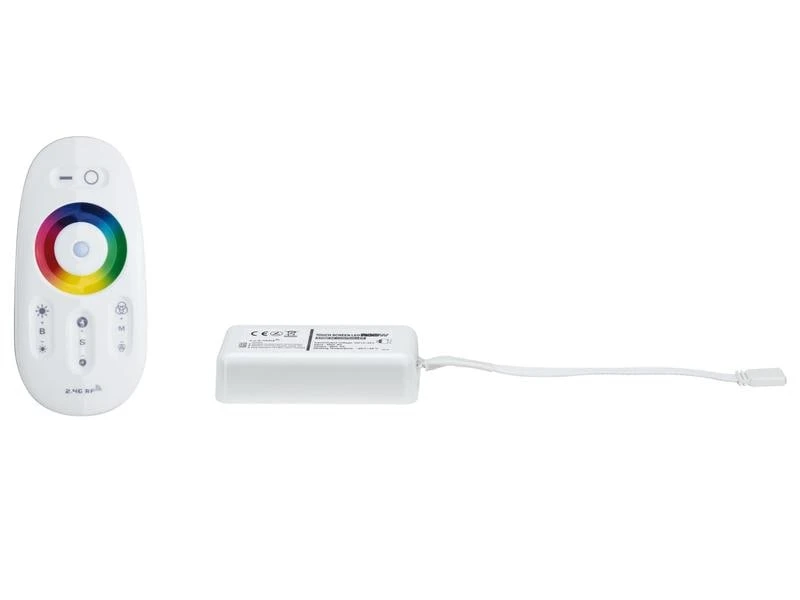 Mit dem MaxLED RGBW Controller und der mitgelieferten Funkfernbedienung lassen sich mehrfarbige MaxLED RGBW-Strips schalten und dimmen sowie Lichteffekte steuern. Dazu ist kein sichtbarer Kontakt zwischen der Fernbedienung und dem Empfänger erforderlich. Auch grössere Reichweiten bis zu 30 Meter können problemlos überbrückt werden.