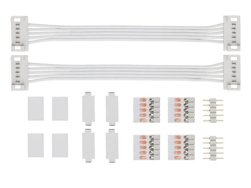 Das MaxLED Universal Connector Set beinhaltet alles, was Sie zum Verbinden von gekürzten und ungekürzten MaxLED-Strips benötigen. Durch das flexible Material lassen sich die Verbindungsstücke in jedem beliebigen Winkel verlegen und gleichen kleine Höhenunterschiede aus.