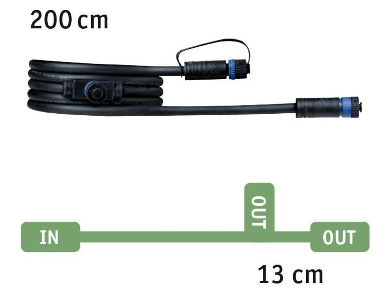 Mit diesem Plug & Shine Verbindungskabel überbrücken Sie eine Entfernung von 2 Meter. Dank seinen zwei Anschlüssen, haben Sie die Möglichkeit weiteres Zubehör oder Plug & Shine Leuchten anzubringen. Abgänge welche Sie nicht benötigen, können Sie mit den mitgelieferten Abdeckkappen sicher verschliessen. Diese gewährleisten den IP68-Tauchwasserschutz. In Kombination mit den Leuchten und Trafos aus der Pllug & Shine Serie, beleuchten Sie Ihren Aussenbereich ganz nach Ihren Wünschen.