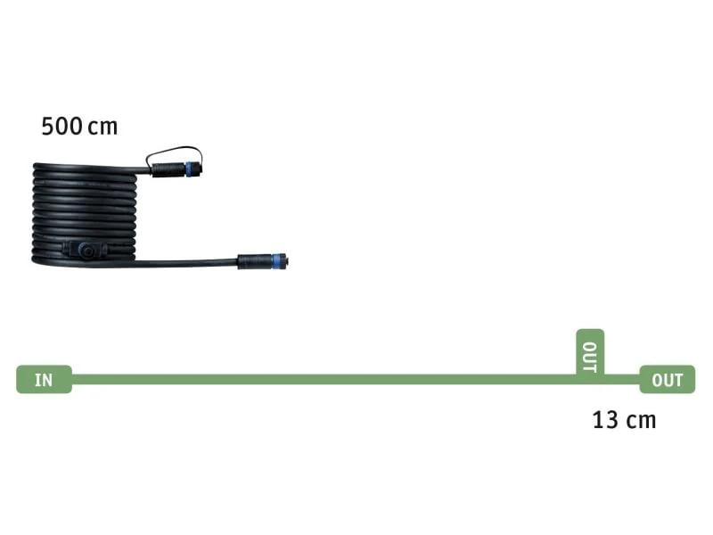 Mit diesem Plug & Shine Verbindungskabel überbrücken Sie eine Entfernung von 5 Meter. Dank seinen zwei Anschlüssen, haben Sie die Möglichkeit weiteres Zubehör oder Plug & Shine Leuchten anzubringen. Abgänge welche Sie nicht benötigen, können Sie mit den mitgelieferten Abdeckkappen sicher verschliessen. Diese gewährleisten den IP68-Tauchwasserschutz. In Kombination mit den Leuchten und Trafos aus der Pllug & Shine Serie, beleuchten Sie Ihren Aussenbereich ganz nach Ihren Wünschen.